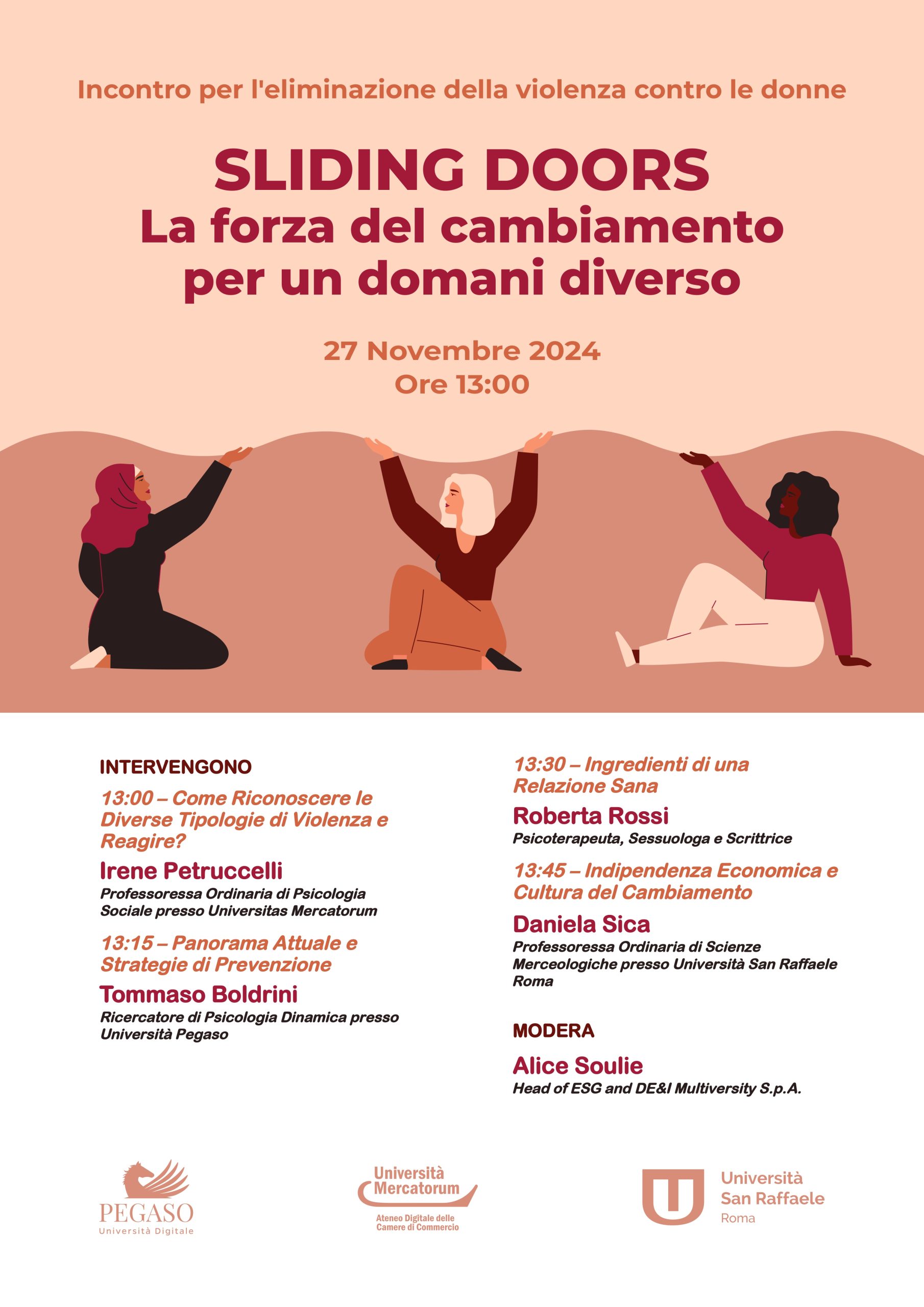 On November 27th at 13:00 the webinar “SLINDING DOORS – The Force of Change for a Different Tomorrow” will be held on YouTube on the occasion of the International Day for the Elimination of Violence against Women. Follow the live here.